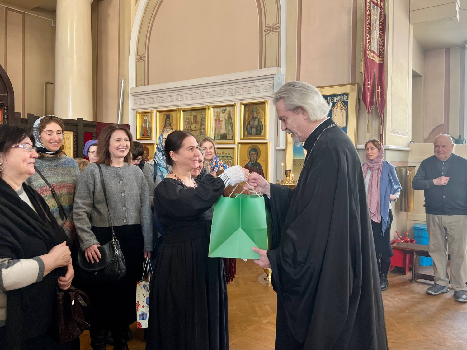 После отпуста иерей Павел Конотопов зачитал поздравительный адрес митрополита Воскресенского Григория, а затем от лица клириков и прихожан храма преподнес в дар отцу Владимиру наперсный крест. Архимандрит Алипий (Светличный) передал юбиляру иконописный образ «Пастырь добрый» Палехского письма. В завершение торжественной части диакон Александр Черепенин возгласил многолетие.